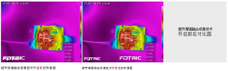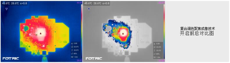 FOTRIC自有復合調色聚焦成像技術,其出色的熱成像效果,非常適用于復雜場景中分析特定目標的細微溫差,有利于現(xiàn)場快速得出正確的診斷結論(FOTRIC自有技術)。