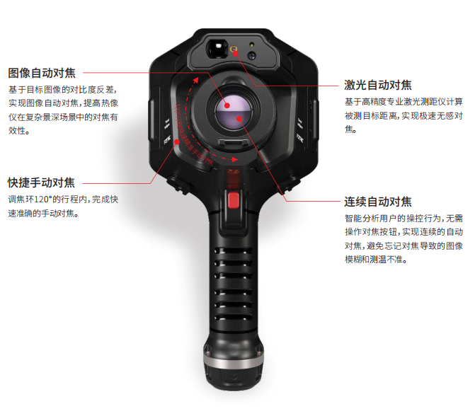FOTRIC全新打造的TurboFocus智能對(duì)焦系統(tǒng),充分融合圖像自動(dòng)對(duì)焦和激光自動(dòng)對(duì)焦的優(yōu)點(diǎn),并以智能連續(xù)對(duì)焦的方式,保證成像清晰,避免對(duì)焦不準(zhǔn)造成的測(cè)溫誤差。