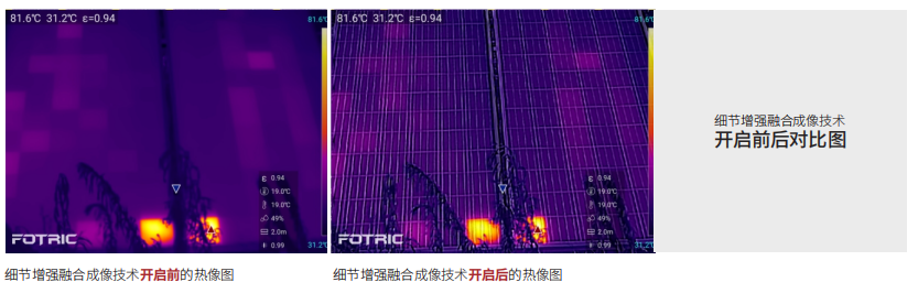 FOTRIC自有的細(xì)節(jié)增強融合成像技術(shù),支持在熱像圖上融合可見光輪廓細(xì)節(jié),輕松定位故障的具體位置(FOTRIC自有技術(shù))。