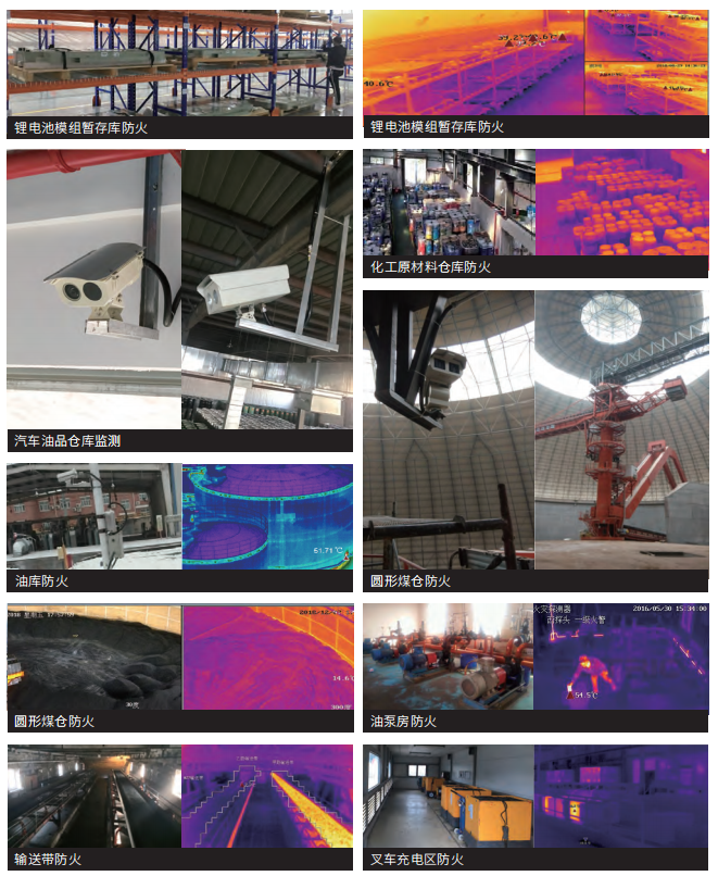 .早期無明火和少量煙霧特性的監(jiān)控對象(如泄漏的化學(xué)品反應(yīng)、活潑金屬與非金屬材料的氧化、石化行業(yè)導(dǎo)熱油泄漏、新能源鋰電池充放電和隔膜破裂短路發(fā)熱)