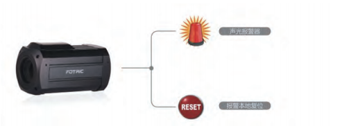 Fotric 800系列圖像型感溫火災(zāi)探測器支持本地監(jiān)控應(yīng)用模式,硬件端可以直接輸出繼電器信號進行火災(zāi)1~4級聲光報警和報警本地復(fù)位功能。