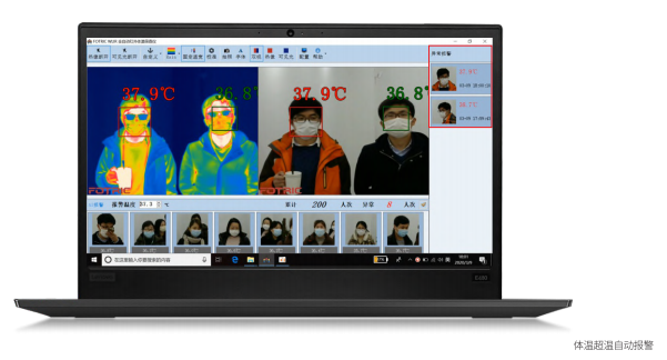 Fotric 692全自動紅外體溫篩查儀使用WLIR體溫篩查專用軟件,當(dāng)人群中體溫異常人員觸發(fā)報警后,系統(tǒng)會自動抓拍一張體溫異常人員的可見光照片,便于后期工作人員的統(tǒng)計與分析。
