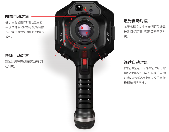 FOTRIC全新打造的TurboFocus智能對焦系統(tǒng),充分融合圖像自動(dòng)對焦和激光自動(dòng)對焦的優(yōu)點(diǎn),并以智能連續(xù)對焦的方式,保證成像清晰,避免對焦不準(zhǔn)造成的測溫誤差。