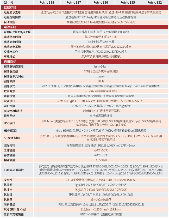 FOTRIC 330系列紅外熱像儀提供豐富的數(shù)據(jù)傳輸接口,包含WiFi-FTP數(shù)據(jù)快傳,Type-C USB3.0有線傳輸,高速SD卡傳輸,4G傳輸以及HDMI、藍(lán)牙接口。
