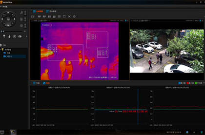 紅外熱成像測(cè)溫儀在人流量大、密集型區(qū)域,如學(xué)校、商場(chǎng)、銀行、證券交易所、影院、集市等公共場(chǎng)所;采用篩查型測(cè)溫方式,快速實(shí)現(xiàn)對(duì)發(fā)熱人員篩查,避免手工篩查造成的人員擁擠和聚集。在接近人流通過的出入口區(qū)域,設(shè)置雙光譜測(cè)溫?cái)z像機(jī),鏡頭對(duì)準(zhǔn)出入通道,測(cè)溫?cái)z像機(jī)設(shè)置一個(gè)接近發(fā)熱(譬如:37.3℃)的報(bào)警閥值,當(dāng)人流中有達(dá)到或超過這個(gè)閥值,后端平臺(tái)報(bào)警提醒工作人員,可以對(duì)發(fā)熱可疑人員進(jìn)行二次測(cè)溫,既能快速篩查,也可避免工作人員一對(duì)一近距離接觸式測(cè)溫工作,形成交叉感染的風(fēng)險(xiǎn)。
