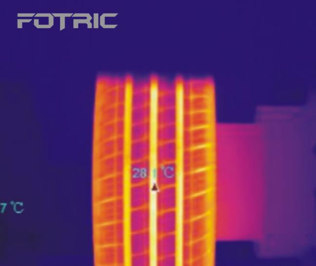 汽車輪胎的研發(fā)生產(chǎn)需要經(jīng)過老化試驗,使輪胎從初始階段進(jìn)入穩(wěn)定階段。FOTRIC 225/226熱像儀通過檢測輪胎表面溫度,可以直接顯示整個輪胎的工作狀態(tài)。利用分屏設(shè)計以及旁路電源,以保證長期在線監(jiān)測。