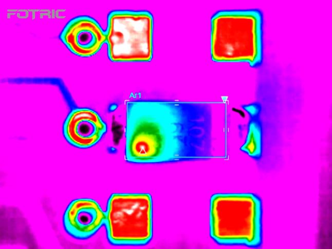 LED芯片的高溫會嚴(yán)重影響芯片的使用壽命,并會導(dǎo)致光衰(降低亮度)。LED芯片中心的紅點可能會逐漸變大,這會降低產(chǎn)品壽命,影響整個產(chǎn)品的質(zhì)量。FOTRIC 227/228熱像儀配有20微米的微距鏡頭,可以在不改變芯片本身溫度的情況下測量較小的目標(biāo),檢測溫度場分布并形成圖像,直觀地看到溫度分布和問題點。